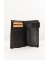 Billetero/Tarjetero/Monedero de hombre fabricado en piel de vacuno de máxima calidad. Estilo tipo libro. Dispone de dos apartados para los billetes, así como varios para las tarjetas de crédito y carnets uno de ellos transparente, algunos de estos dispuestos en una solapa que sale de la parte izquierda del billetero hacia afuera del mismo modo hacia la izquierda. Además, contiene un apartado para las monedas que cierra con una solapa con cierre de botón. En la parte central podemos encontrar un apartado con abertura hacia ambos lados con cierre de cremallera. El billetero cierra en la parte de fuera con otra solapilla con el mismo tipo de cierre de botón. (Envío gratuito)