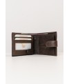 Billetero/Tarjetero/Monedero de hombre fabricado en piel de vacuno de máxima calidad. Estilo americano. Dispone de dos apartados en su interior para los billetes, así como varios apartados para tarjetas de crédito y carnets, algunos de ellos transparentes, están dispuestos en dos solapas que salen de la parte izquierda del billetero hacia afuera y que se recogen en el interior con una solapilla de cierre de botón. También contiene una cremallera en el centro que abre dos apartados en el interior de este a ambos lados, así como un departamento para las monedas cerrado con una solapa con cierre de botón. El billetero se cierra en la parte exterior con otra solapilla con el mismo tipo de cierre. (Envío gratuito)