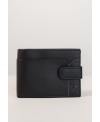 Billetero/Tarjetero/Monedero de hombre fabricado en piel de vacuno de máxima calidad. Estilo Americano. Dispone de dos apartados para los billetes, así como varios para las tarjetas de crédito y carnes, uno de ellos transparente. Amplia las zonas de las tarjetas con una expansión en la parte izquierda que salen del mismo modo hacia la izquierda de este. Además, encontramos un apartado para las monedas con cierre de clip. En el exterior encontramos una trabilla que cierra el billetero por completo con el mismo tipo de cierre. Envío Gratuito