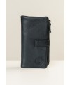 Monedero/billetero de señora, fabricado en piel de vacuno de máxima calidad. Dispone de dos bolsillos principales. Uno de ellos con cierre de cremallera para las monedas. El otro con correílla y cierre de clip de botón. Este último dispone de un apartado para los billetes y varios para tarjetas de crédito y carnets, así como para otro tipo de documentos. (Envío gratuito).